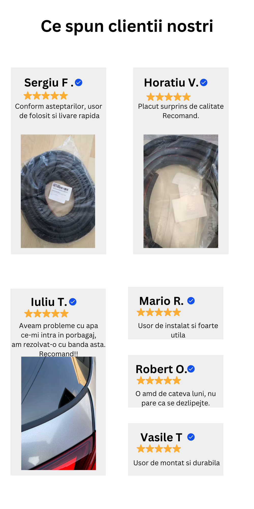 - Protectie Sporita: Previne infiltratiile de apa, praf si aer, protejand interiorul masinii si prelungind durata de viata a componentelor.