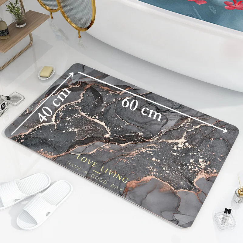 Covor de baie antiderapant, ultra absorbant, universal Fabricat din Diatom si Spuma de Silicon, dimensiune 60 x 40 cm, Model Marmura