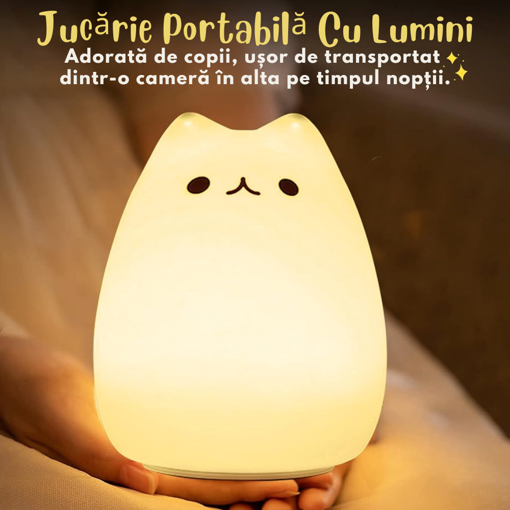 - ✅ Design prietenos: Forma drăguță de pisicuță este ideală pentru copii, servind atât ca jucărie, cât și ca sursă de lumină ambientală.