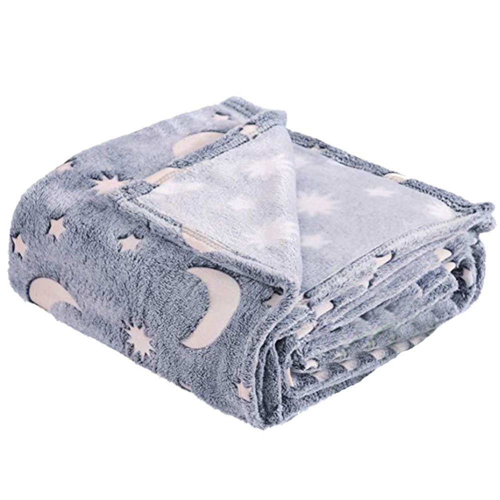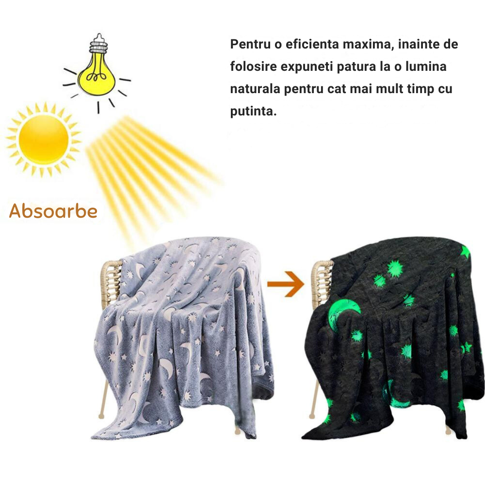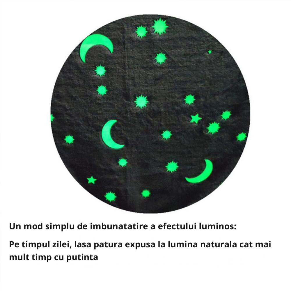 Pătură Moale Fosforescenta cu Luni și Stele – Strălucitoare în Întuneric, Ideală pentru Copii și Adulți