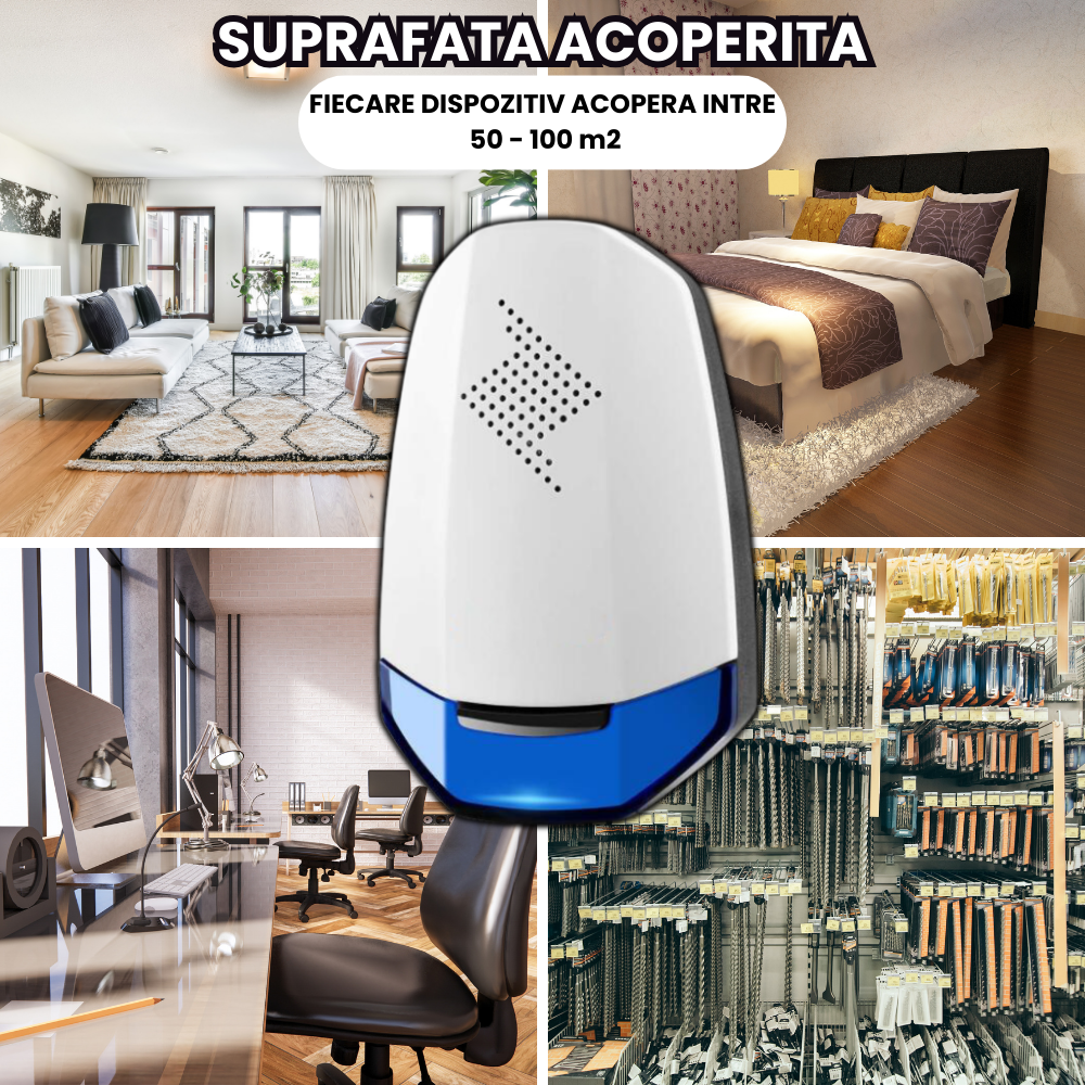 - Acoperire Mare: Fiecare dispozitiv acoperă o suprafață de 50-100 mp², ideal pentru utilizarea in garaje, case și depozite.