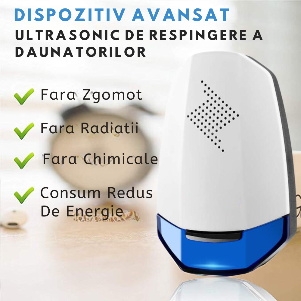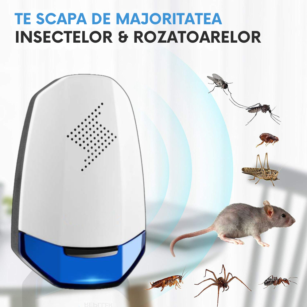 - Tehnologie cu Ultrasunete: Emite unde sonore de inaltă frecvență, imperceptibile pentru oameni și animalele de companie, dar extrem de deranjante pentru dăunători.